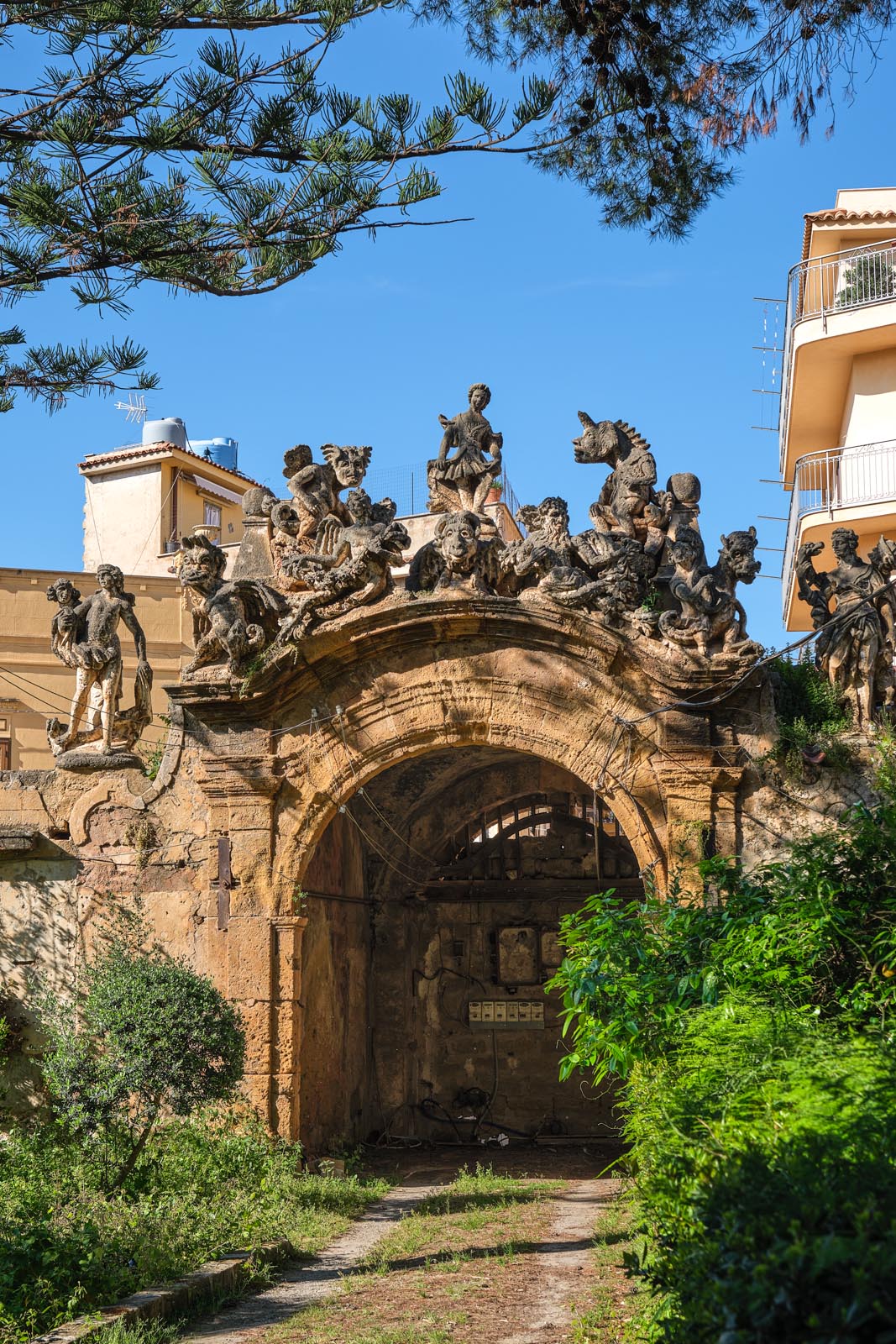 In 1749, Francesco Ferdinando Gravina and Alliata, VI Prince of Palagonia, had decorations added to the villa that earned it the nickname of “Villa of Monsters“. The external walls and the lower bodies are, in fact, adorned with statues depicting animals and anthropomorphic figures, statues of ladies and knights, musicians and various caricatures and by a particular double-ramp staircase, under the sumptuous princely coat of arms of the Gravina family.