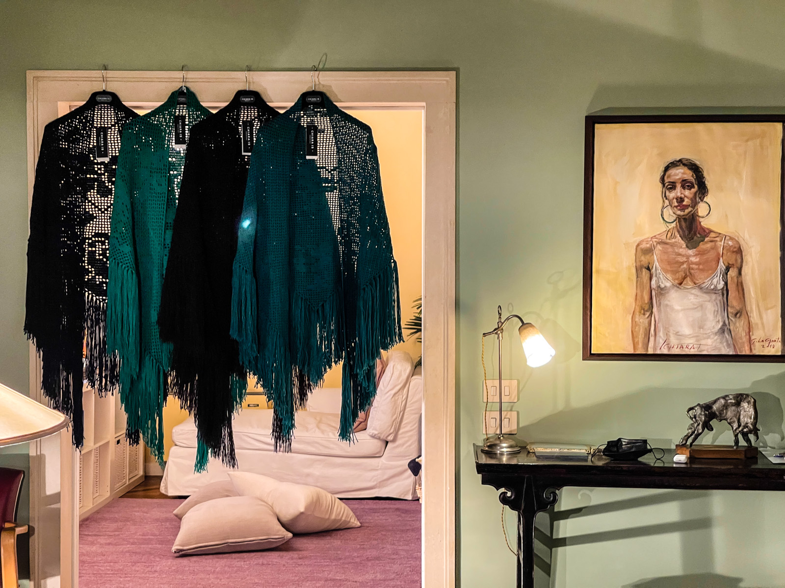 A space that combines laboratory, atelier, and home, with a large display of shawls and other unique garments, symbols of superstition and mystery; capable of educating and emancipating today as they did in the days when women embroidered and wove their pride into threads.