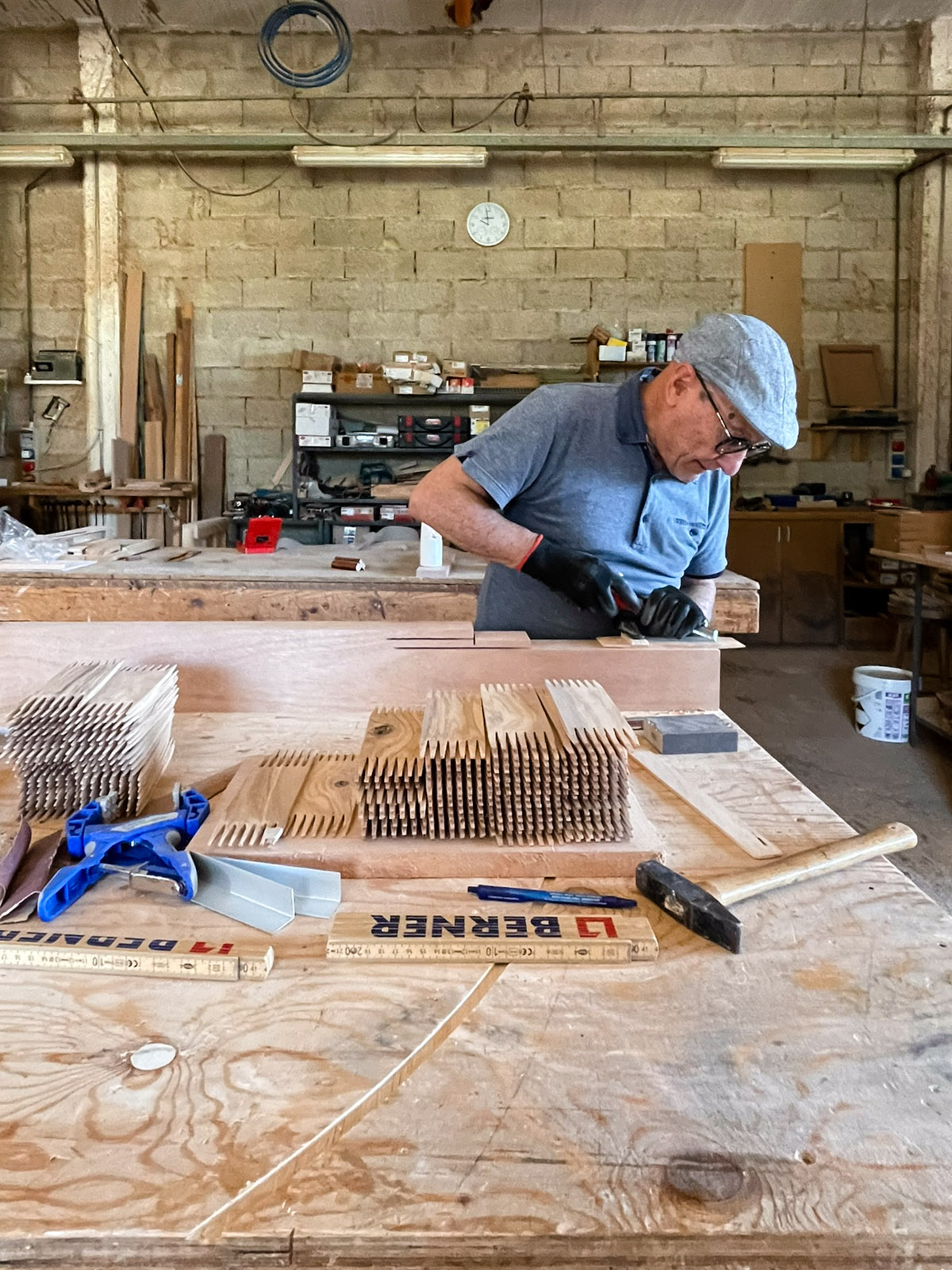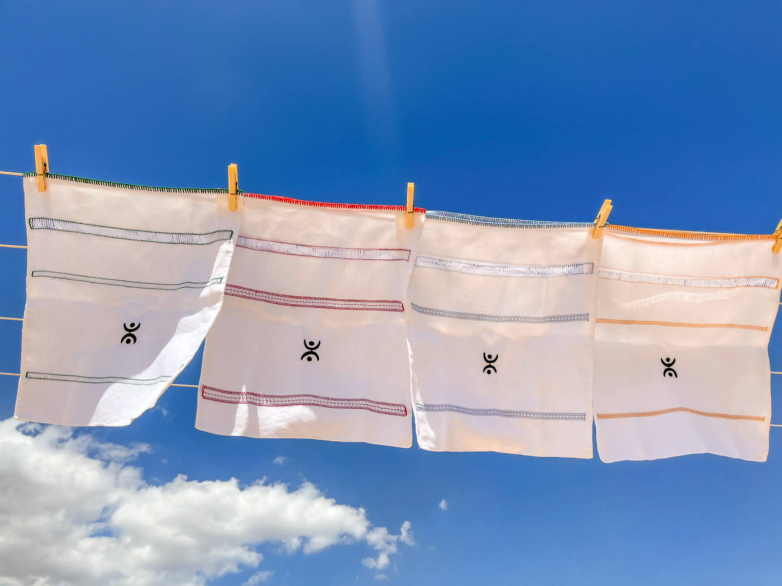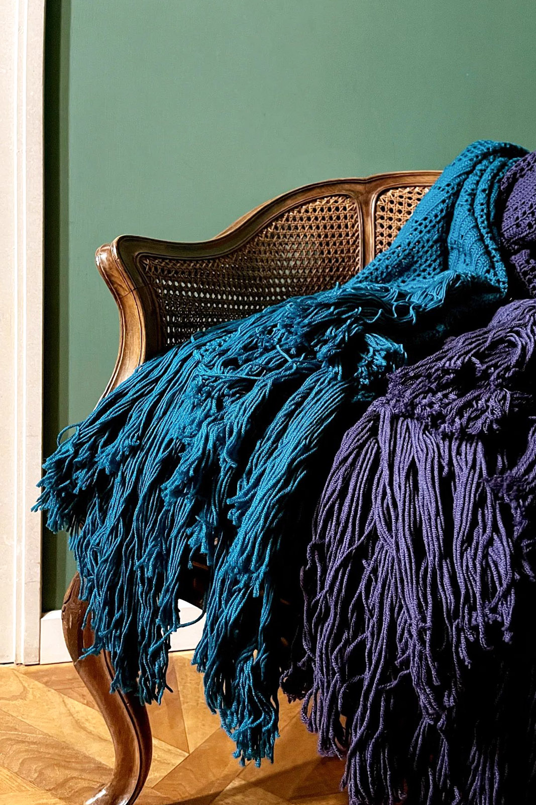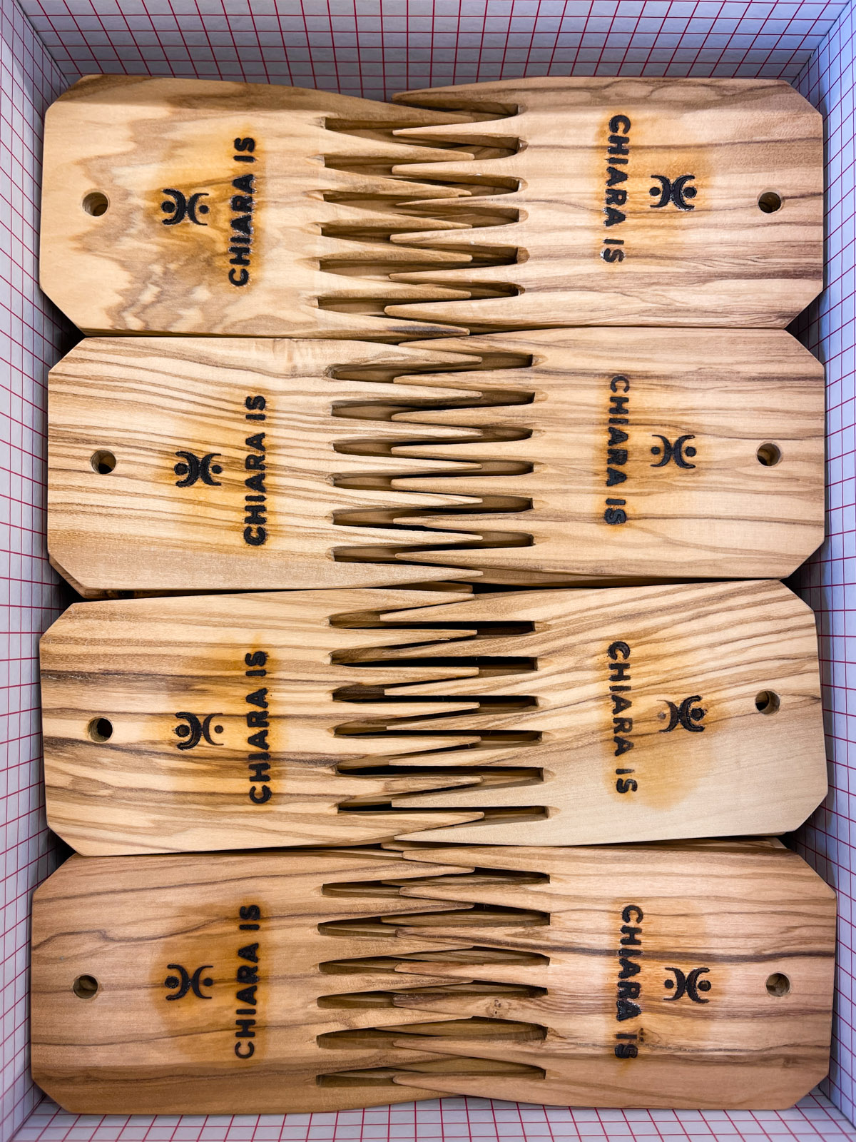 The hand-sewn linen case containing each shawl is reminiscent of the pillowcases Sicilian women used to protect their most important garments. Inside, there’s a comb handcrafted by a Sicilian carpenter using olive wood, used to maintain the beauty of the fringes.