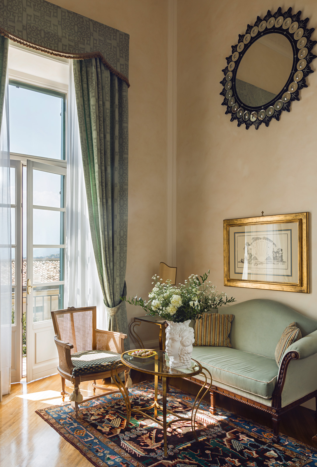 There are 40 rooms, including the Presidential Suite, which features two bedrooms with king-size beds and a large terrace with a jacuzzi offering panoramic views of Mount Etna.