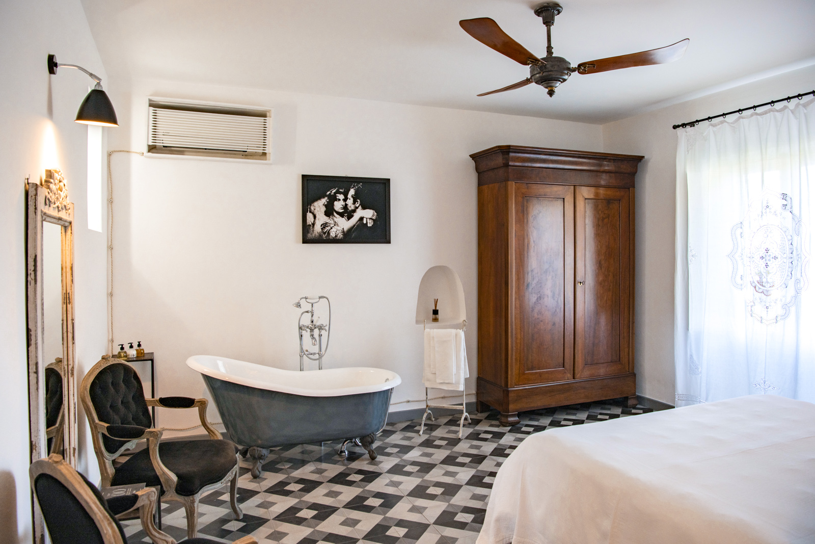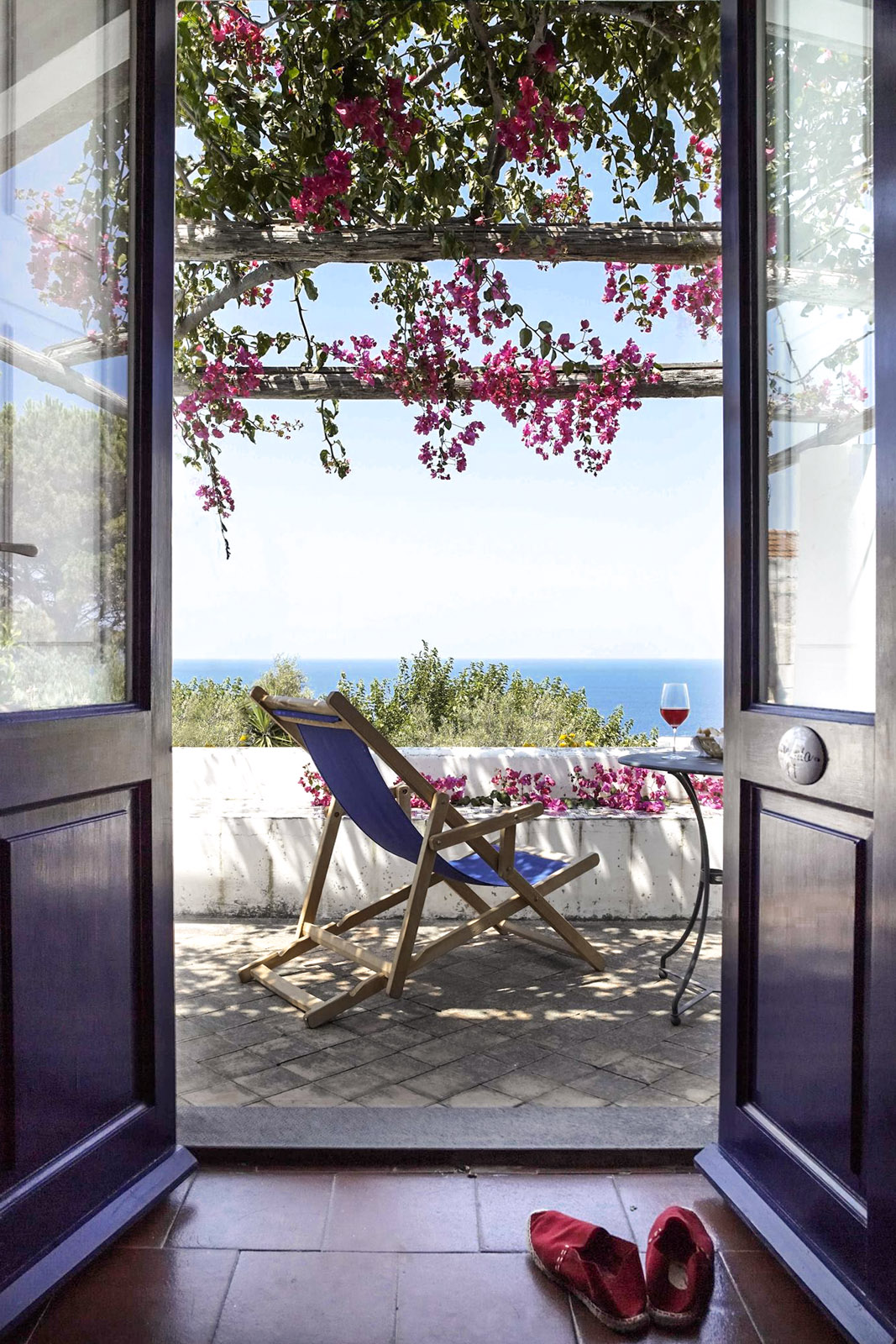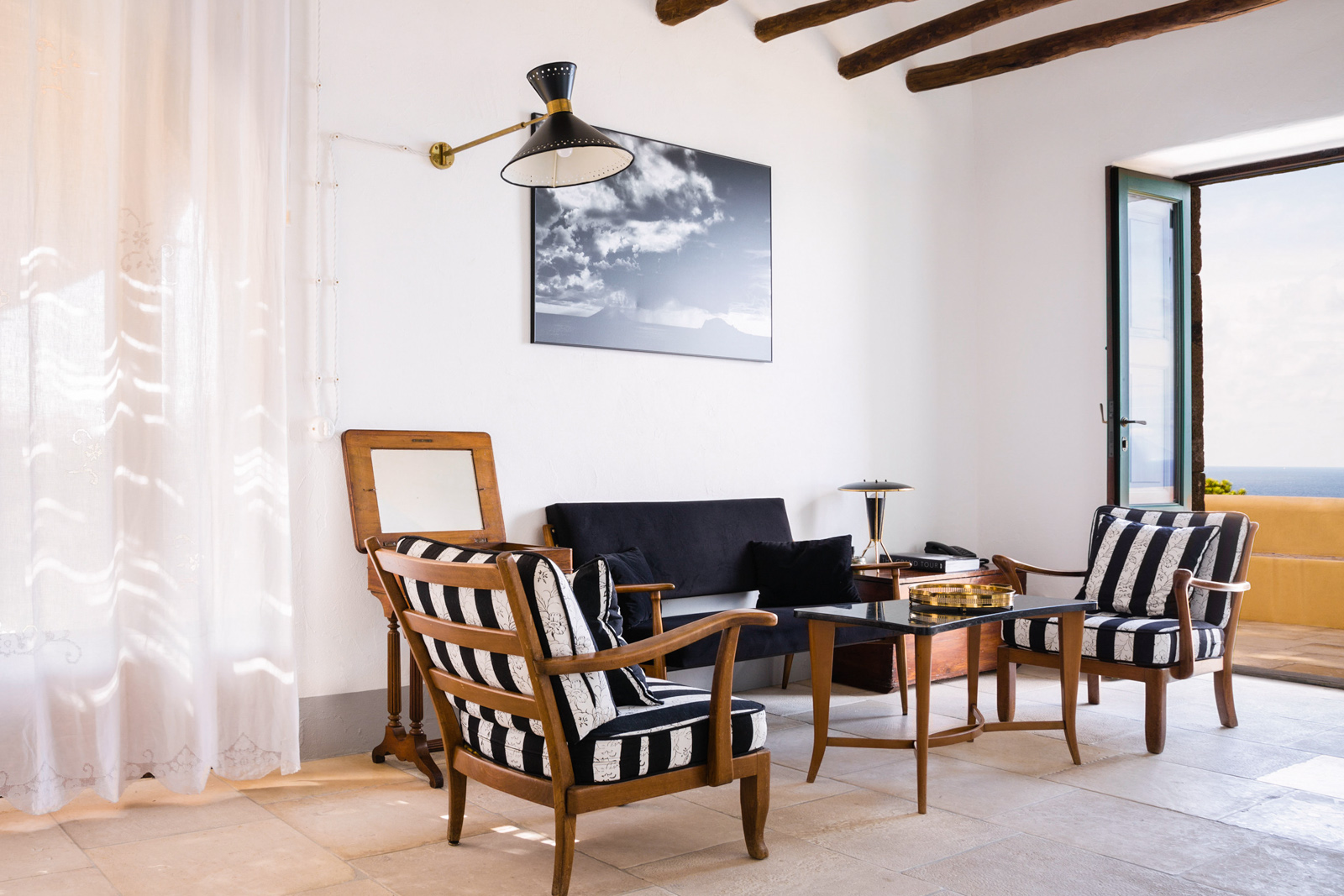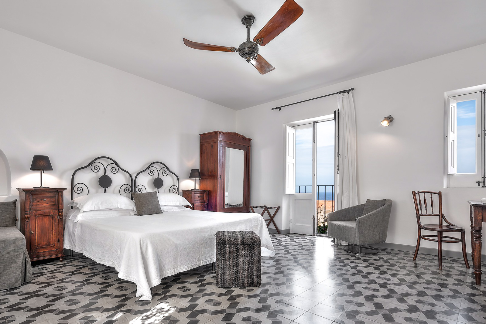 Ognuna delle 30 camere è un pezzo unico, arredata con pezzi di antiquariato e tessuti naturali, alcune con terrazze private e vista sui vulcani spenti dell’isola, i “Gemelli”, o sul blu profondo delle Eolie.